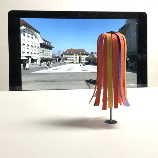 The lamp base was specially produced by Schätti AG using 3D printing with recycled powder and designed by Robert Wettstein. The energy-efficient LED bulb with a GU10 socket can be easily replaced when needed.